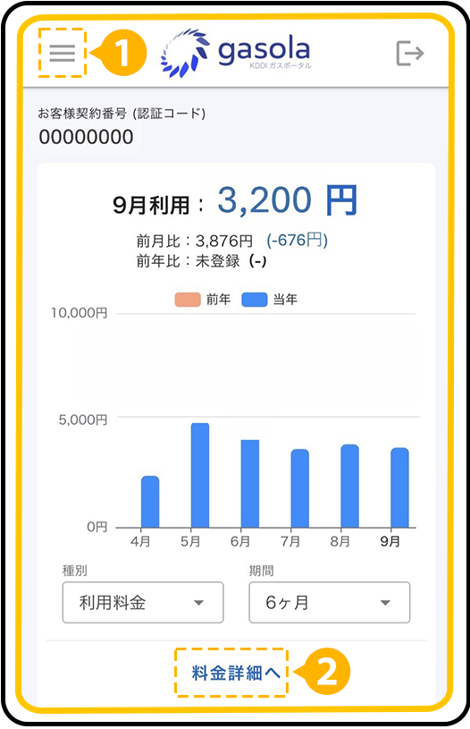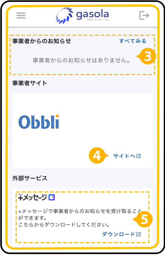 Top画面では+メッセージや最新月の料金を確認することが出来ます。